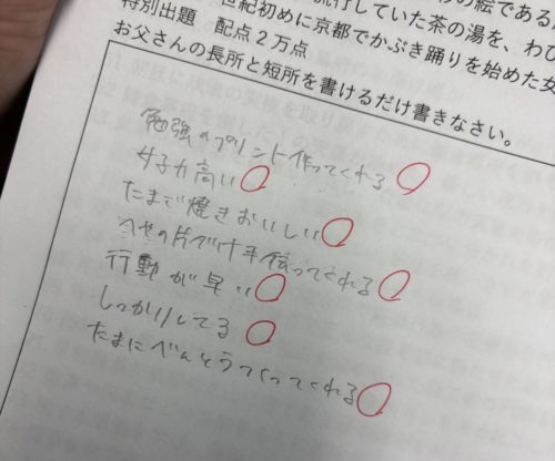 試験後半、真剣にやってた娘が笑いを堪えるのに必死になってました。